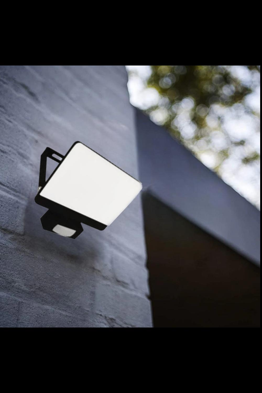 'Parry' 30W LED PIR Motion Sensor Floodlight Black Body with Full Front White Opal Diffuser 2700lm 4000k