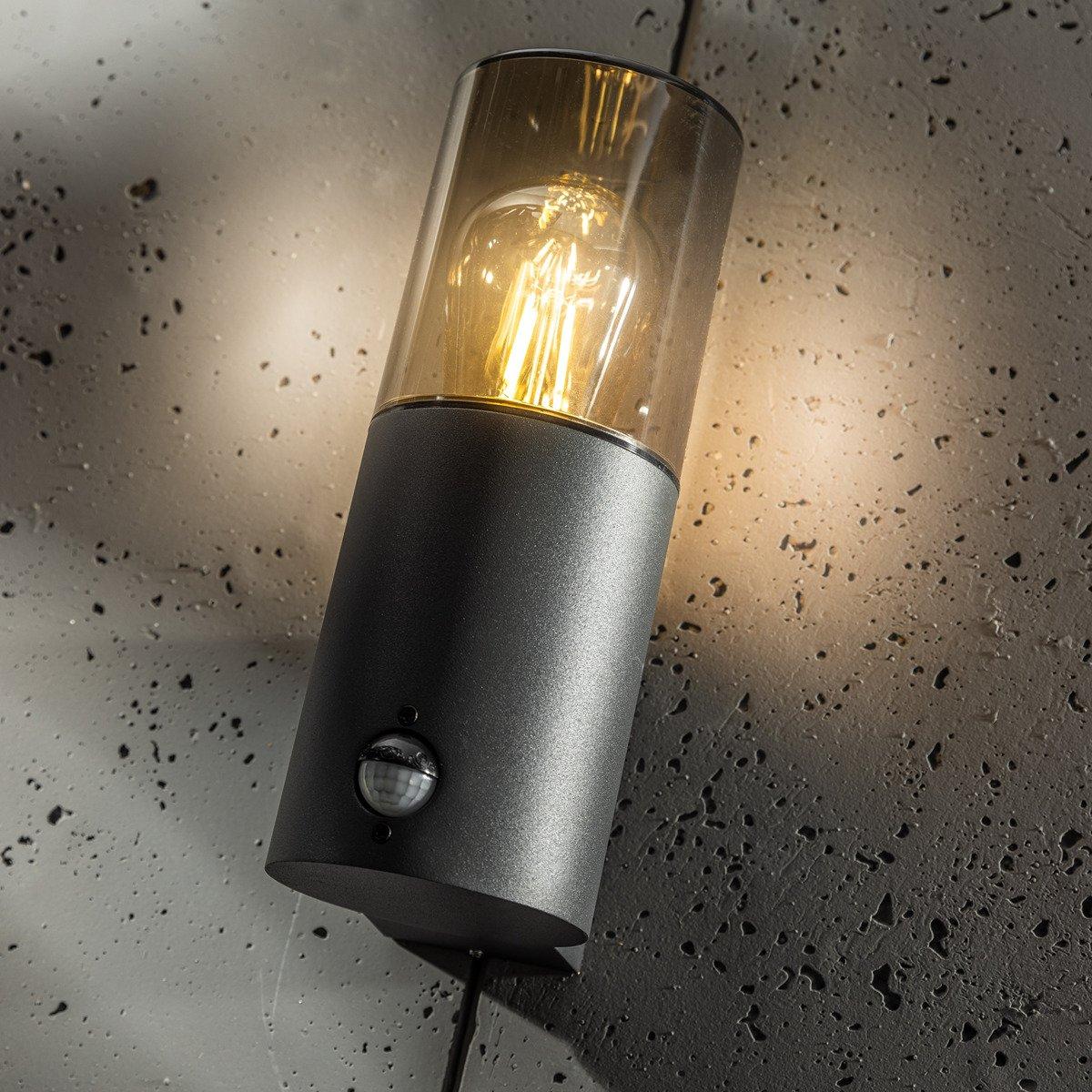 'Bluebell' Dark Grey Cylinder Wall Light with PIR Motion Sensor