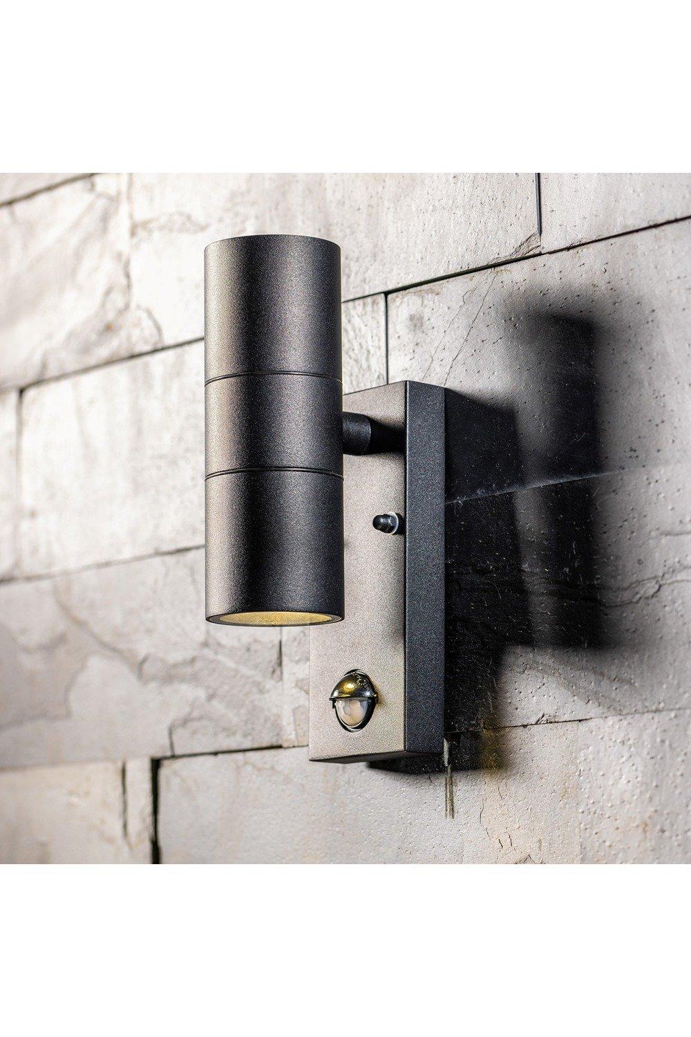 'Leon' Black Stainless Steel GU10 Up and Down Outdoor Wall Light IP44 with PIR Motion Sensor