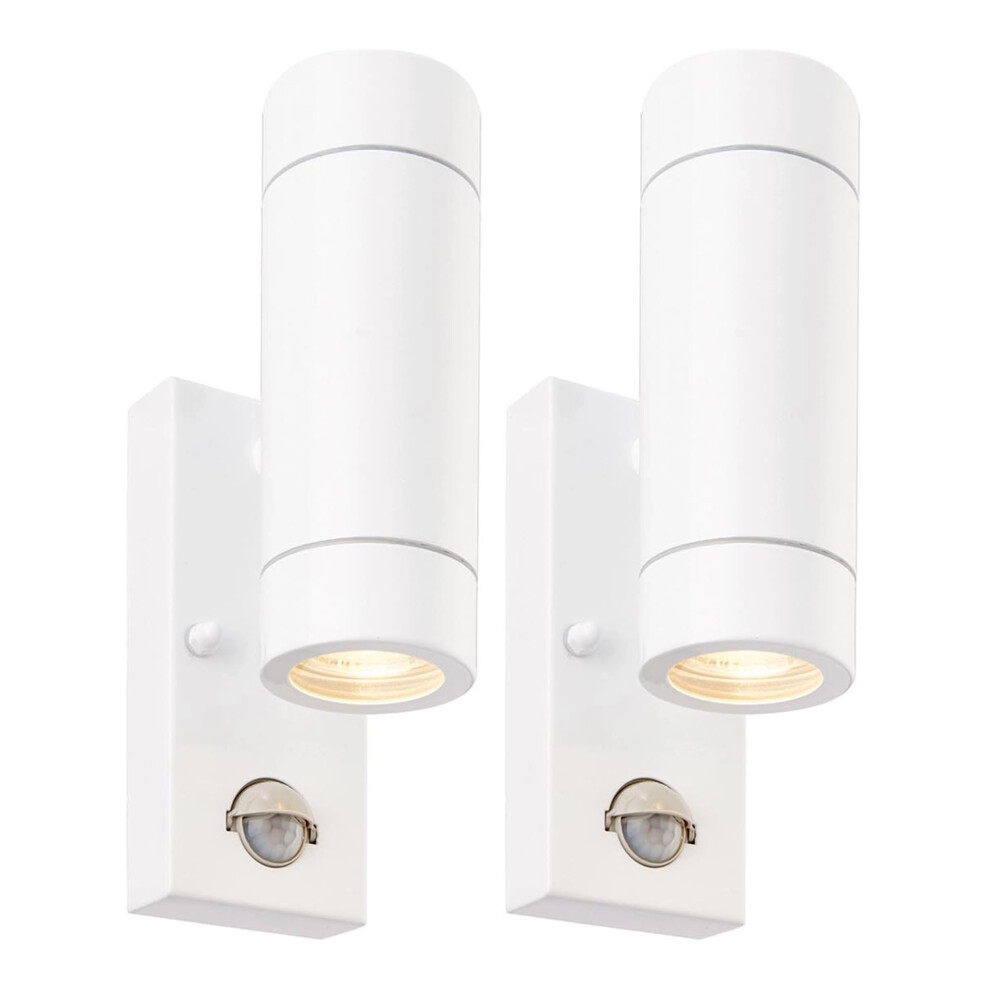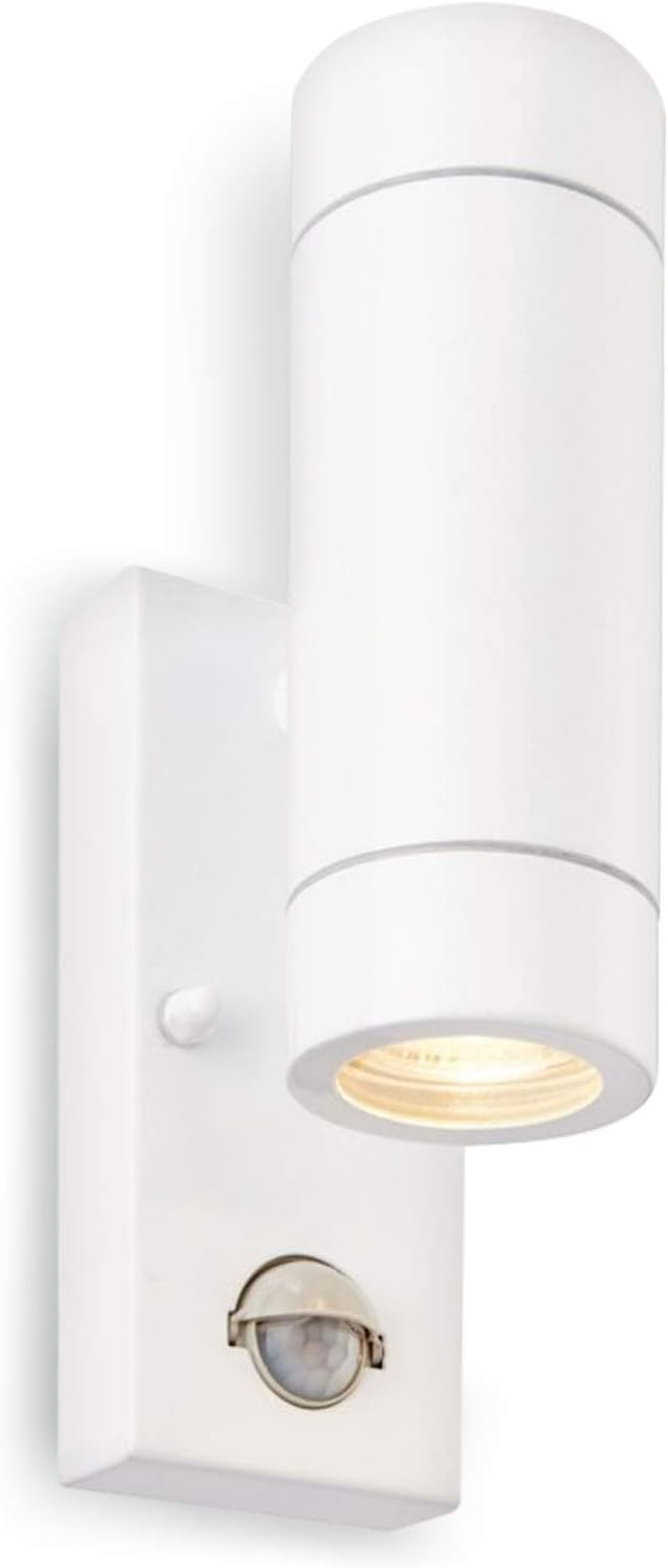 National Lighting Palin Outdoor Lights with Built-in PIR – Outside Lights Mains Powered – GU10 LED Compatible Outdoor Wall Lights – Up Down Outside Lights – IP44 Rated Wall Light, Gloss White
