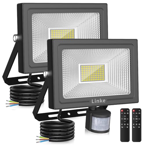 Linke 60W Security Lights Outdoor Motion Sensor, 5200LM PIR LED Floodlights 6500K Daylight White, IP66 Waterproof Outside Light Mains Powered Perfect for Garage Garden Porch Courtyard, 2 Pack
