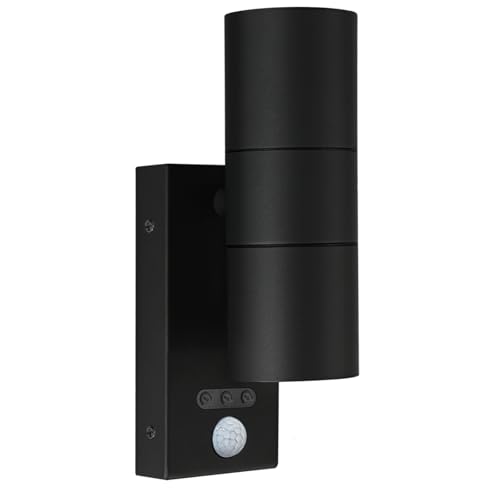 Kerry Outside Wall Lights with Sensor, IP65 Waterproof Up Down Outdoor Lighting, External Pir Wall Mount Security Light, Black Stainless Steel Exterior Light Mains Powered for Front Door (Bulb Excl.)