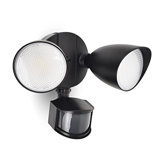 SANSI 27W LED Security Lights Outdoor Motion Sensor, 2700LM 5000K IP65 Waterproof Adjustable Dual Head LED Floodlight with PIR Sensor, 180° Detection Angle, 50Ft Detection Range (Mains Powered)