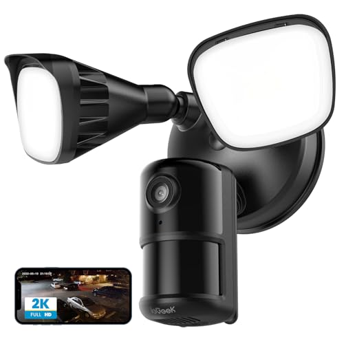 ieGeek Floodlight Security Camera with PIR - Security Light with Camera - 2K Security Camera Outdoor with Color Night Vision,2.4G Wired Home CCTV Cam System, 2600lm Lights,IP65,Alarm,Work with Alexa