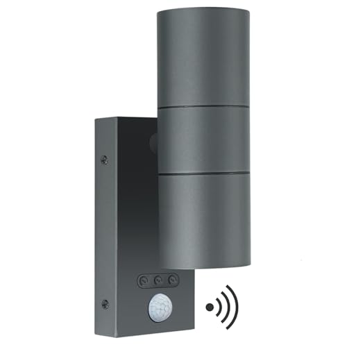 Kerry Outside Wall Lights with Sensor, IP65 Waterproof Up Down Outdoor Lighting, External Pir Wall Mount Security Light, Anthracite Grey Stainless Steel Exterior Light Mains Powered (Bulb Excl.)