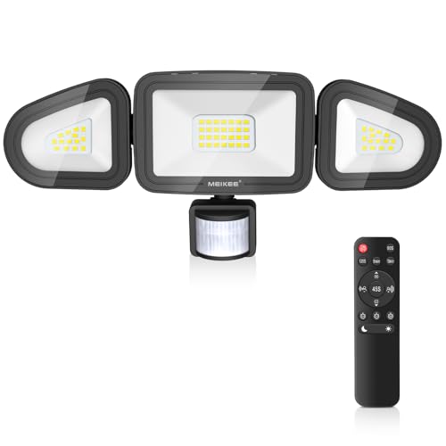 MEIKEE 42W Security Lights Outdoor Motion Sensor 3600LM 6500K Daylight White PIR Floodlights Outdoor 4 Modes Timing with Remote Control IP66 Waterproof 180° Adjustable for Garden Garage Doorways