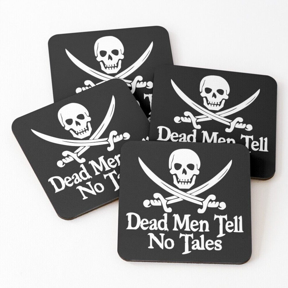 Leather Coasters Pirates Skull Crossed Swords Dead Men Tell No Tales - White Set of 4 / 4 x 4 inch