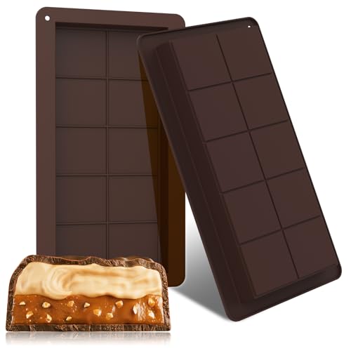 GeeRic 2PCS Dubai Deep Chocolate Bar Mold, Silicone Deep Upgraded Break Apart Non-Stick Easy Release Chocolate DIY Molds, Baking Molds for Wax Melts, Candy, Jell