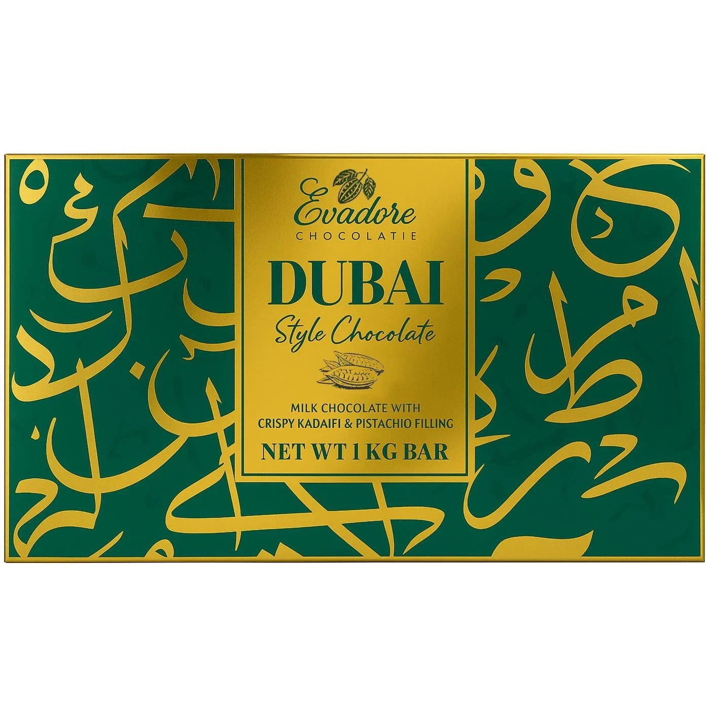 Evadore Dubai Style Milk Chocolate With Crispy Kadaifi Pistachio Filling Bar 1kg