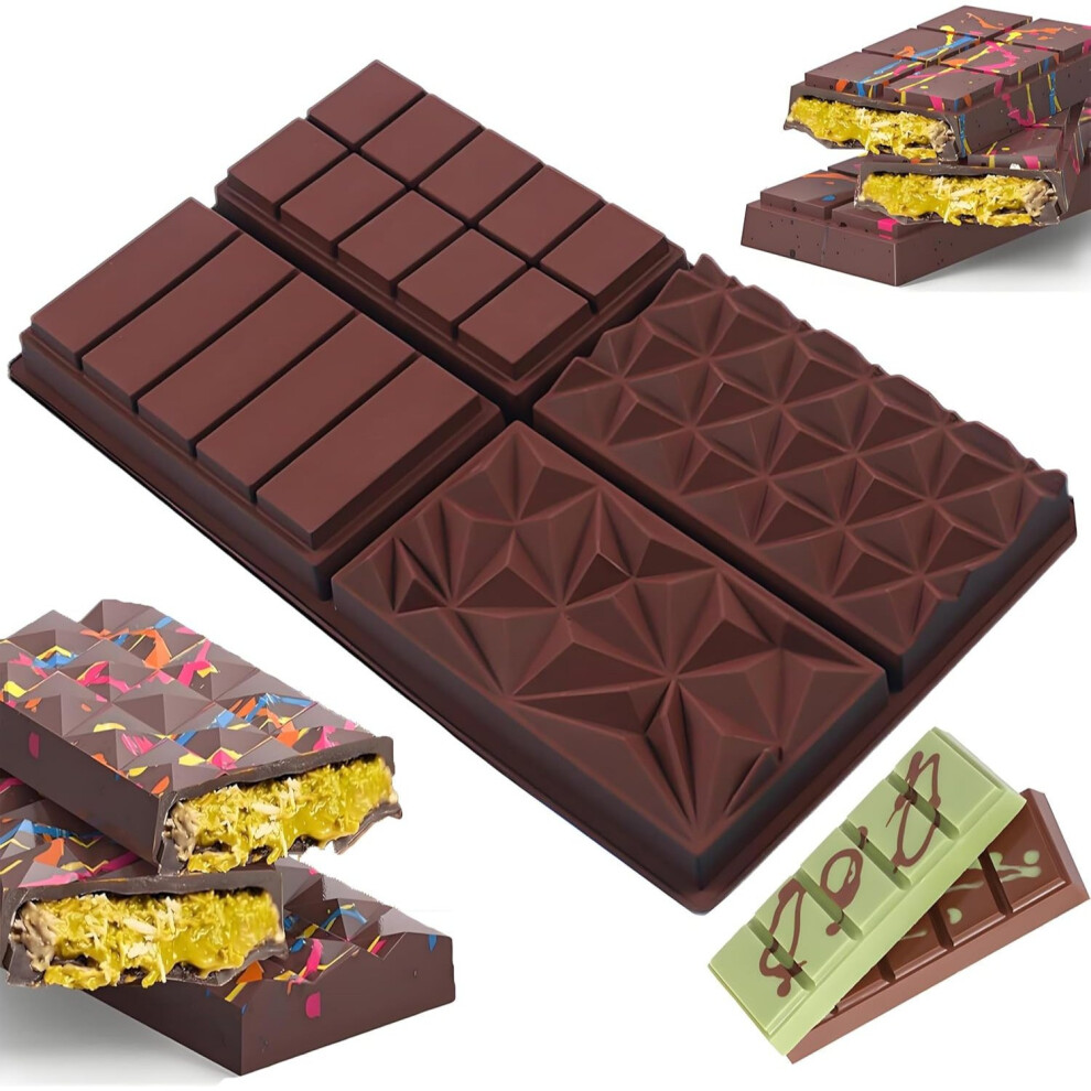 (Silicone) Dubai Chocolate Mould,Deep Chocolate Bar Mould,Mix Diamond Square Cube Shapes,for Pistachio Paste and Praline Chocolate