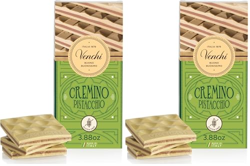 Venchi Pistachio Cremino Bar 110g - Milk Chocolate, White Chocolate with Pistachio Paste- Gluten Free (Pack of 2)