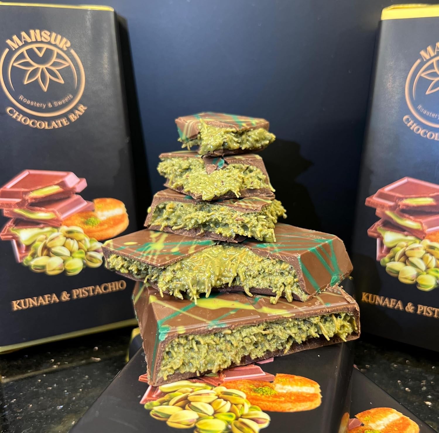 Viral DUBAI Chocolate | Chocolate Bar Pistachio Knafeh by MANSUR Est. 1891