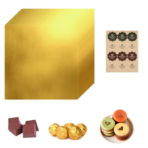 100 Pcs Dubai Chocolate Bar Wrappers with Thick Paper Backing and Stickers, 15 x 15 cm/5.91″x 5.91″ Gold Foil Deep Chocolate Wrapping Paper for Homemade Candies Sweeties