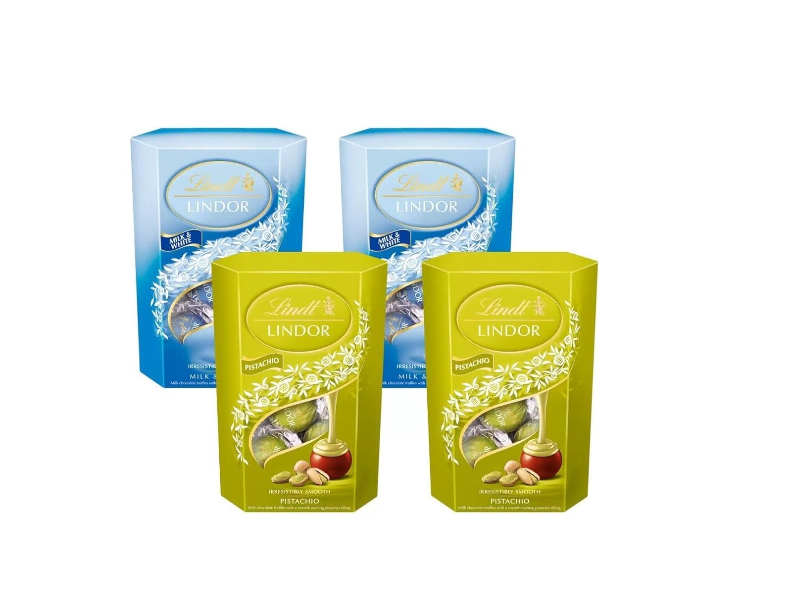 Lindt Lindor Milk & White & Pistachio Chocolate Ball Truffles Gift Pack 4 x 200g