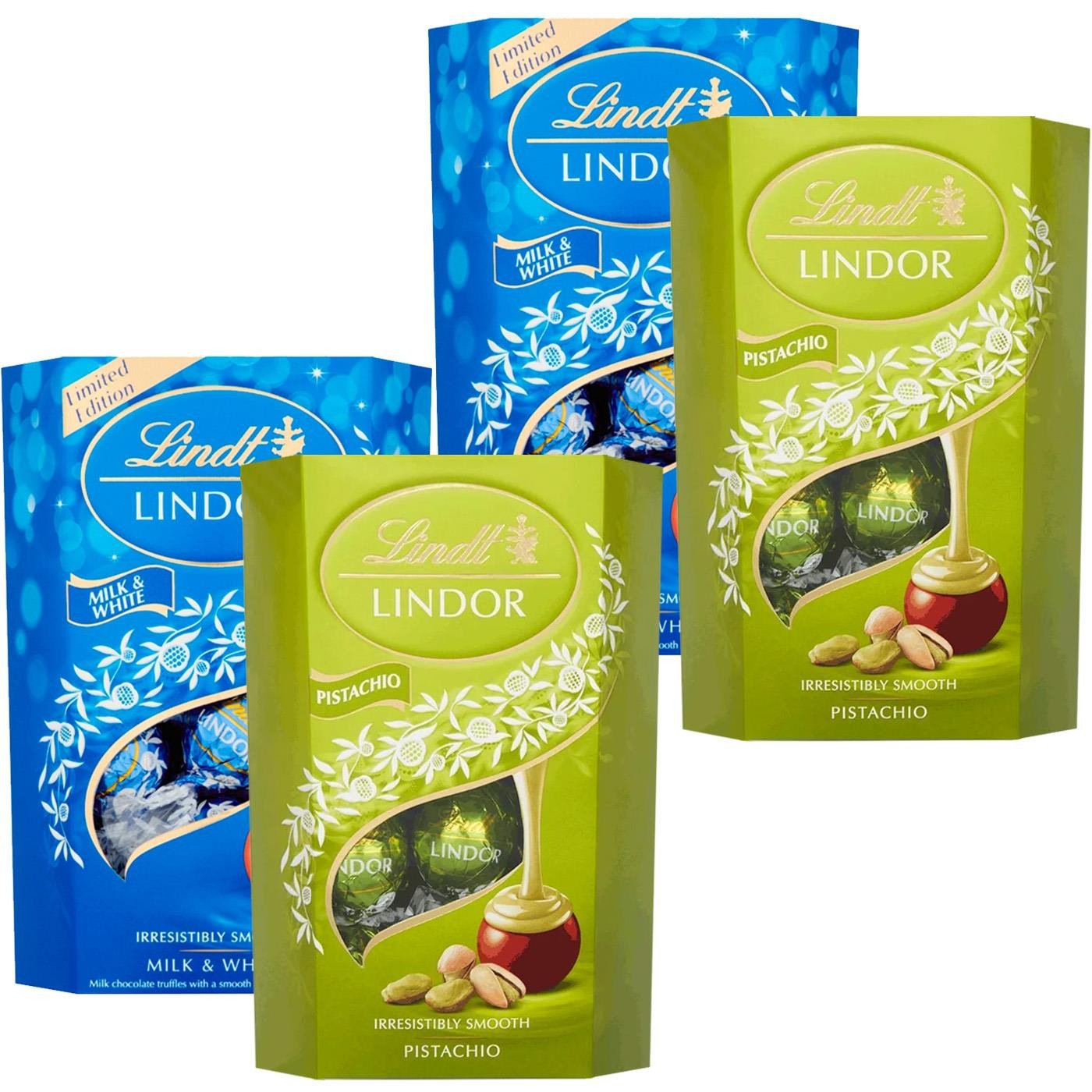 Lindt Lindor Milk & White & Pistachio Truffles Chocolate Balls 200g Pack of 4