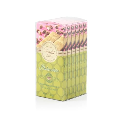 Venchi - Kit of 6 Gourmet Pistachio Chocolate Bars with White Chocolate and Whole Pistachios, 570g, Gluten-Free, No Colourants or Preservatives