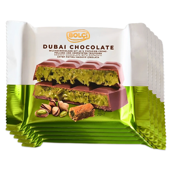BOLCI DUBAI CHOCOLATE PISTACHIO KADAYIF FILLED MILK CHOCOLATE (5 PACKS X 100G)
