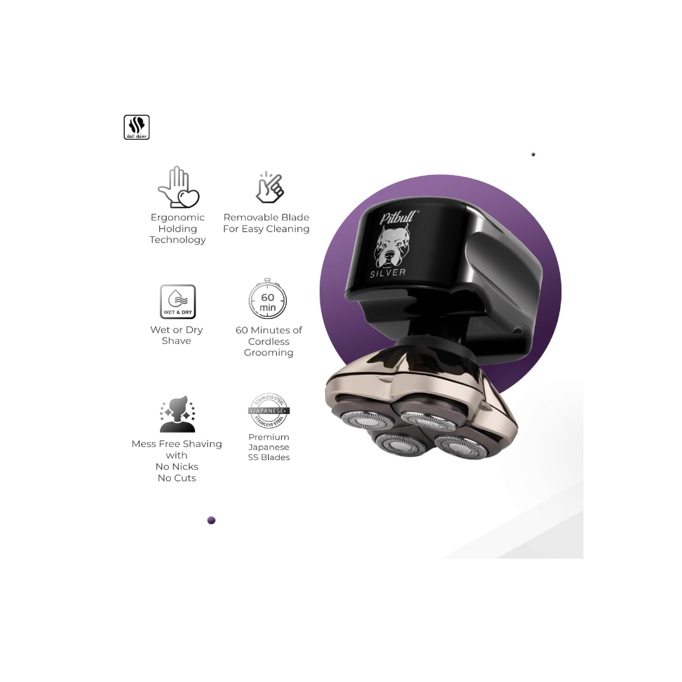 Skull Shaver Pitbull Silver Pro SX5 â Head and Face Shaver â Electric for Men, Wet & Dry, Cordless, Water Resistant â Enhanced Performance