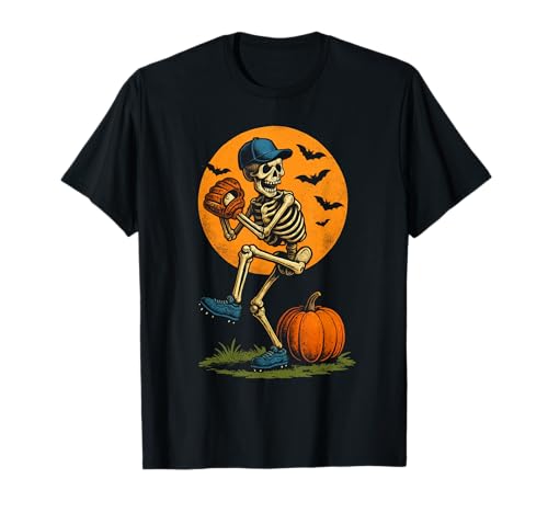 Skeleton Baseball Pitcher Funny Baseball Halloween T-Shirt