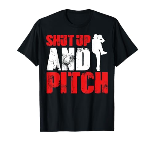 Shut Up and Pitch Funny Baseball Pitcher Sports Design T-Shirt