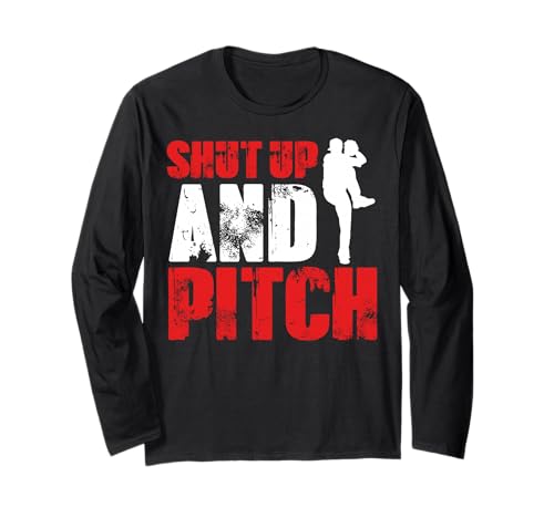 Shut Up and Pitch Funny Baseball Pitcher Sports Design Long Sleeve T-Shirt