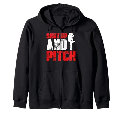Shut Up And Pitch Funny Baseball Pitcher Sports Design Zip Hoodie
