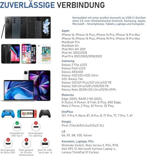 BENEWY USB-C Headphones with Microphone for Samsung Galaxy S22 Ultra/S21 FE/S20, Pixel, iPad Pro - In-Ear Wired Earbuds