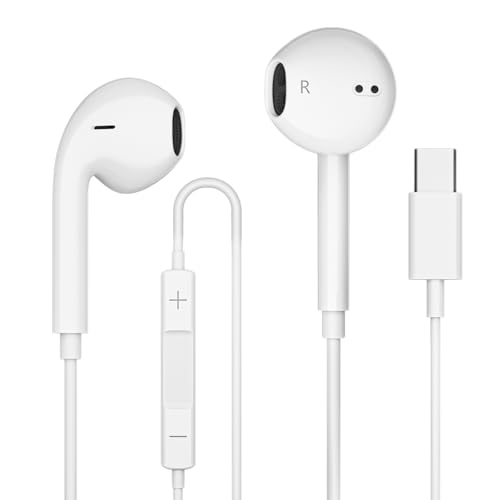 USB C Headphones for iPhone 17 16 15 Pro iPad Pro, USB Type C Earphones USB C Wired Earbuds Microphone Volume Control for Samsung S25 S24 Ultra S23 S22 S21 Note20 A54, Pixel 9 8 7 6 6a 5 4,OnePlus9