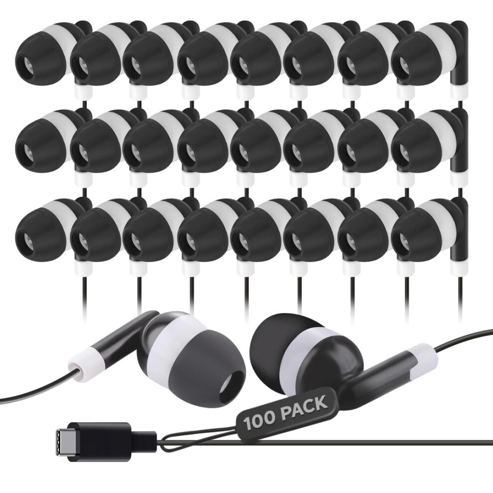 100-Pack USB C Wired Earbuds ? Type C In-Ear Headphones for iPhone 16/15, iPad Pro, Galaxy S23/S22/S21, Pixel, Chromebook, MacBook ? Bulk USB-C