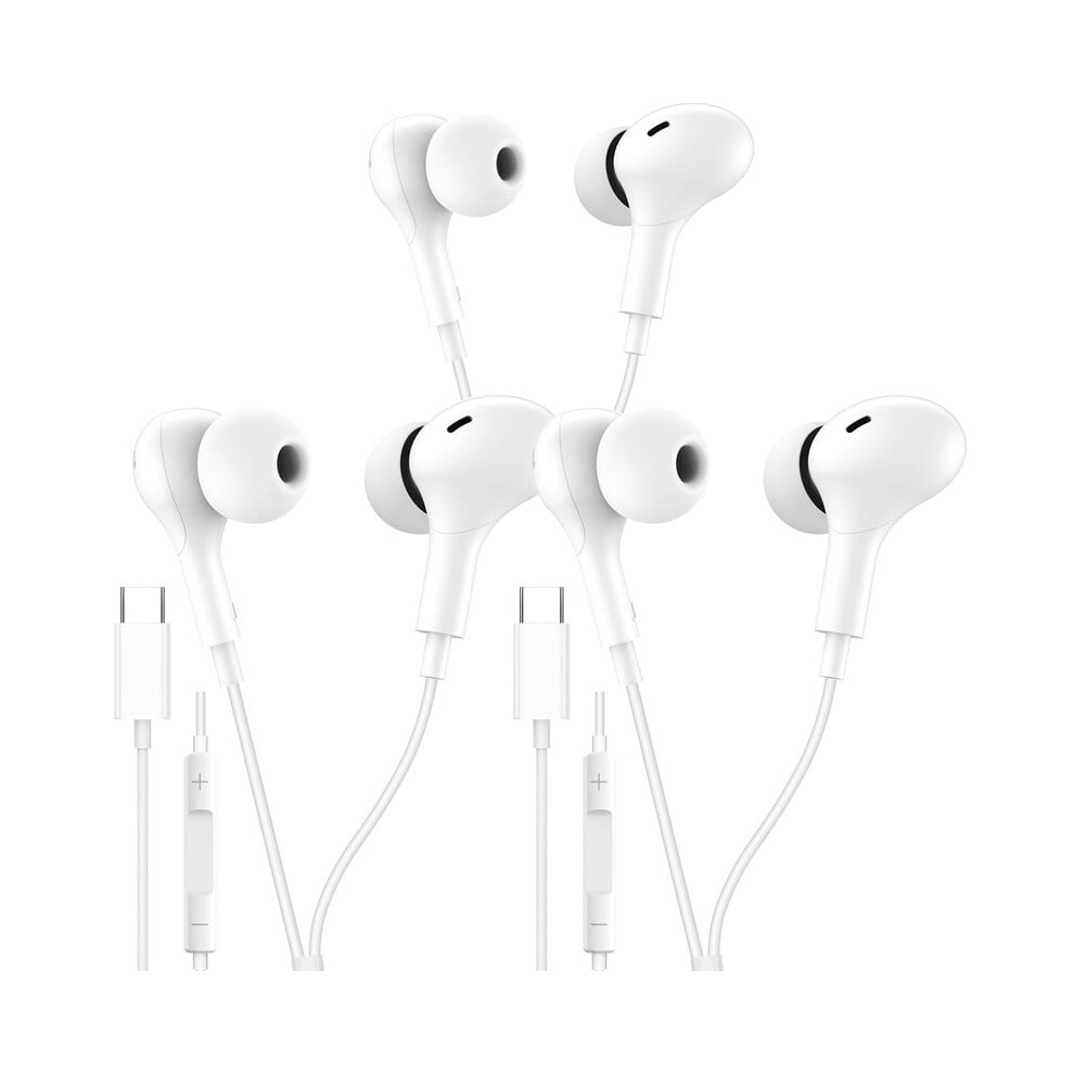3 Pack Afflux USB-C Headphones, Wired Earbuds Compatible with iPhone 16 Pro Max/16 Pro/16 Plus & Samsung S24/S23/S22/S21 Ultra, Pixel 8/7/6/6a, White