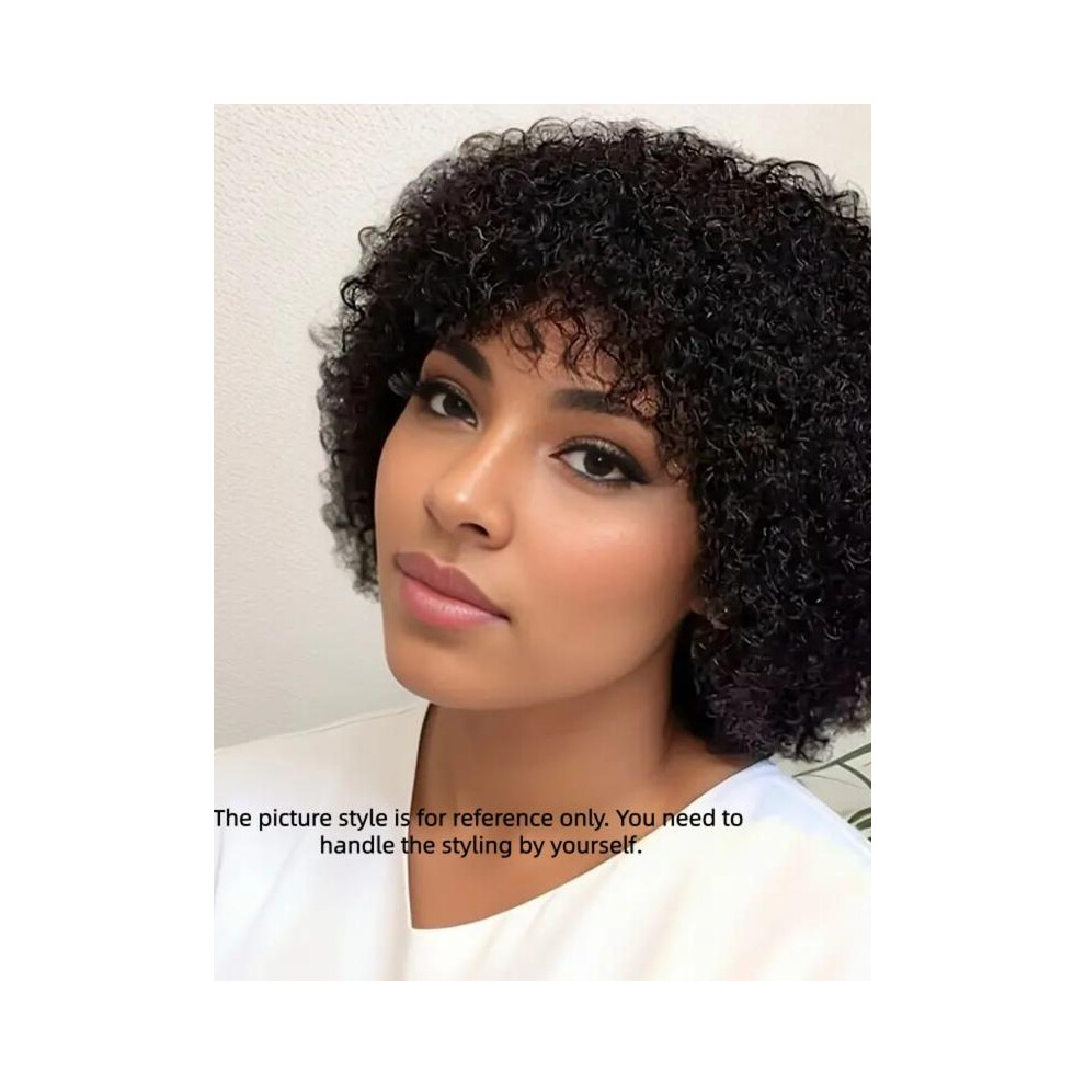 Afro Kinky Curly Human Hair Wigs With Bangs Glueless Short Pixie Cut Human Hair Wigs For Women Full Machine Kinky Curly Human Hair Wigs