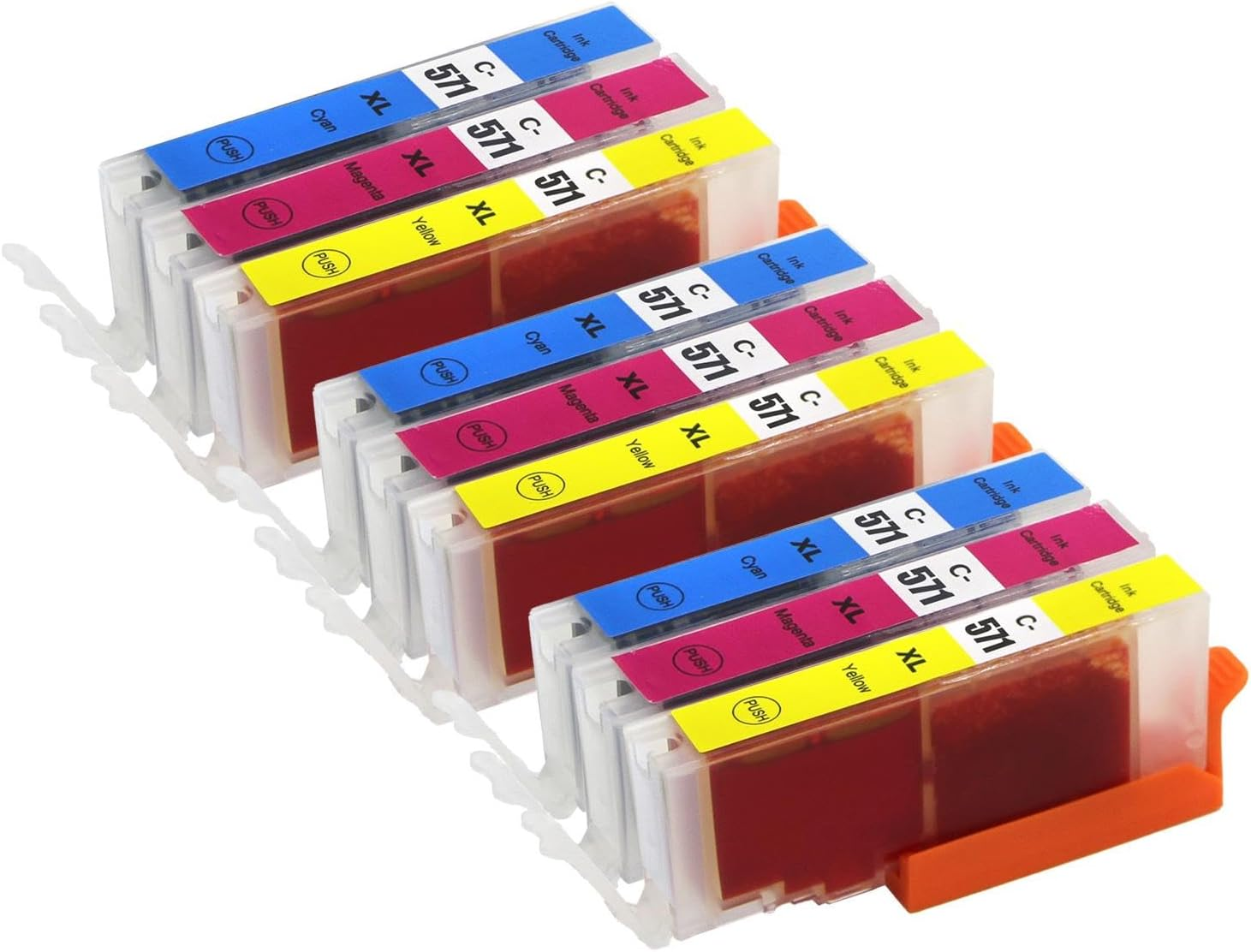 Compatible 3 Go Inks C/M/Y Set of 3 Ink Cartridges to replce Canon CLI-571 / non-OEM for PIXMA Printers (9 Pack)