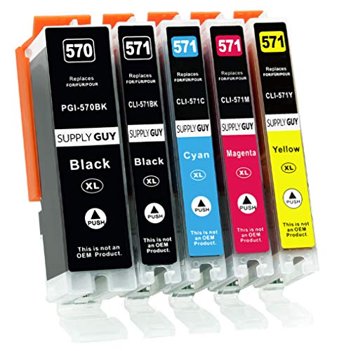Supply Guy 5 Ink Cartridges compatible with Canon PGI-570 / CLI-571 for Canon Pixma MG5750 MG5751 MG5752 MG5753 MG6850 MG6851 MG6852 MG6853 TS5050 TS5051 TS5053 TS5055 TS6050 TS6051 TS6052