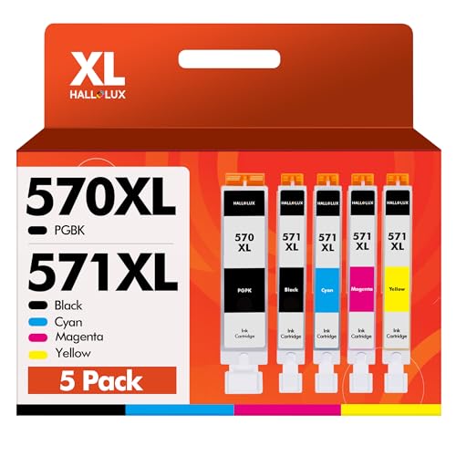 HALLOLUX 5-Pack 570XL 571XL Ink Cartridges High Yield Replacement Canon PGI-570XL CLI-571XL Compatible w/PIXMA MG5700 MG5750 MG5751 MG6851 TS5050 TS5051 TS6050 MG7750 MG6800 MG6850 (PGBK/B/C/M/Y)