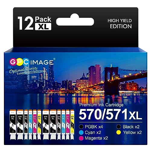 GPC Image 12-Pack PGI 570XL CLI 571XL Ink Cartridges Replacement for Canon 570 571 Compatible with PIXMA MG5700 MG5750 MG5751 MG6850 MG6851 TS5050 TS5051 TS6050 TS6051 (PGBK Black Cyan Magenta Yellow)