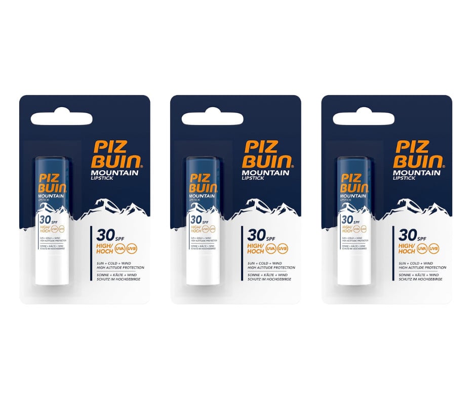 Piz Buin SPF30 Unisex Mountain Lipstick 4.9g - Pack of 3 - UVA/UVB Sun Cold Wind