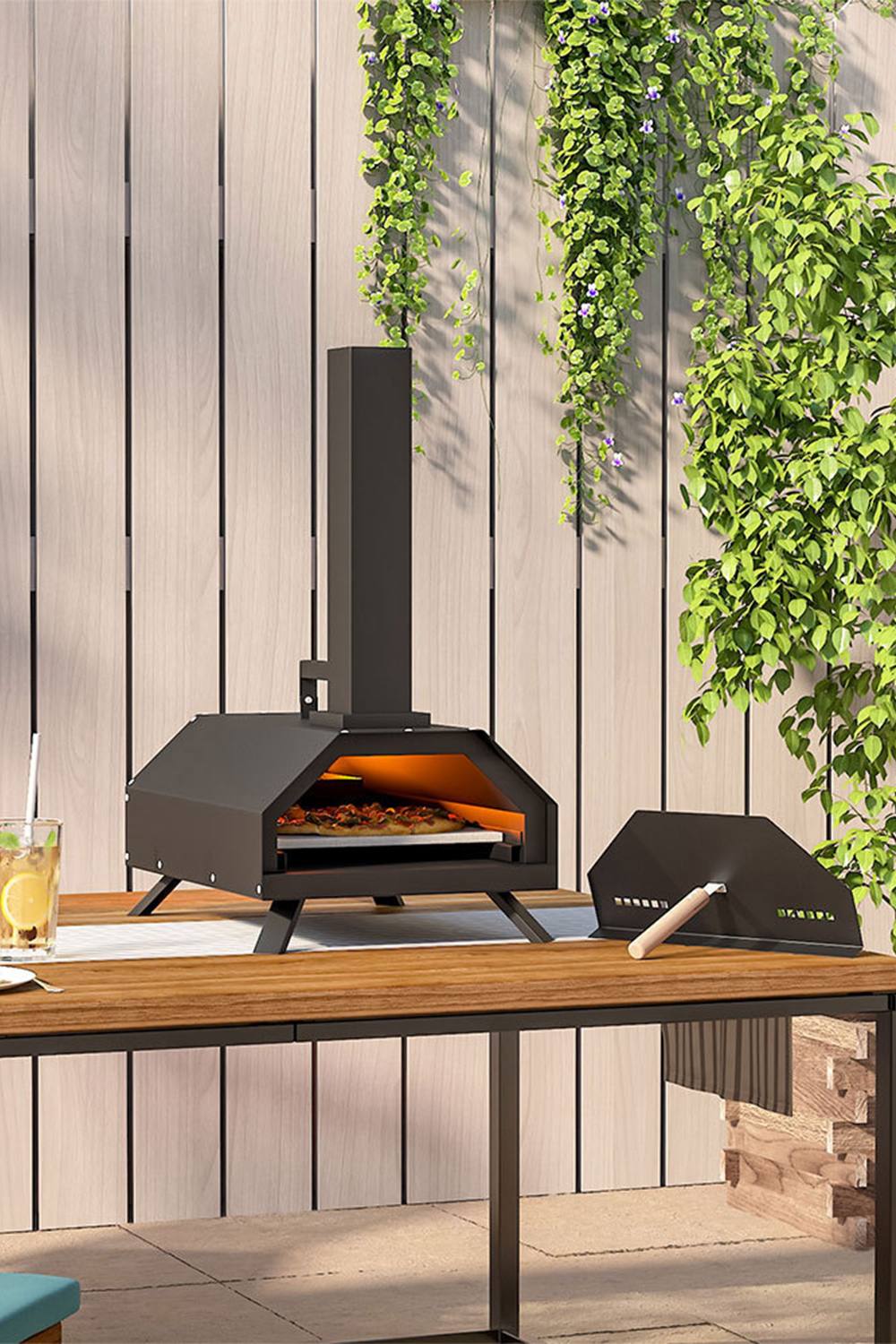 GiantexUK Outdoor Pizza Oven, Wood Fired Pizza Maker with Chimney, Pizza Peel and Stone, Garden Patio BBQ Grill Pizza Cooker for Party Camping