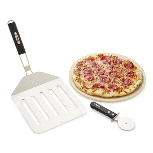 Tower T932025 3 Piece Pizza Tool Set includes Pizza Stone, Cutter and Paddle, Suitable for 12” Pizza’s, Stainless Steel