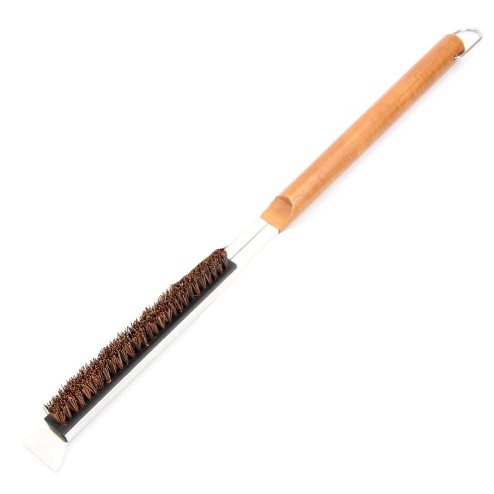Multi-function Pizza Oven Cleaning Brush - Rubberwood Handle + Coconut Silk Bristles, Including Scraper, Suitable for Pizza Stone and Gas Grill