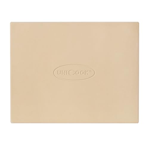 Unicook Pizza Stone for Oven and Grill, Rectangular Baking Pan 38 x 30.5 cm, Cordierite Large Cooking Oven Stone with Plastic Dough Scraper, Thermal Shock Resistant Pizza Pan