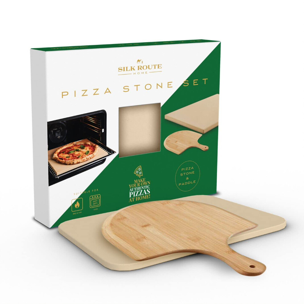 Silk Route Home Pizza Stone and Paddle Set ? Large Temperature Resistant & Non-Stick Rectangular Cordierite Pizza Stone (38cmx30cm) and Premium