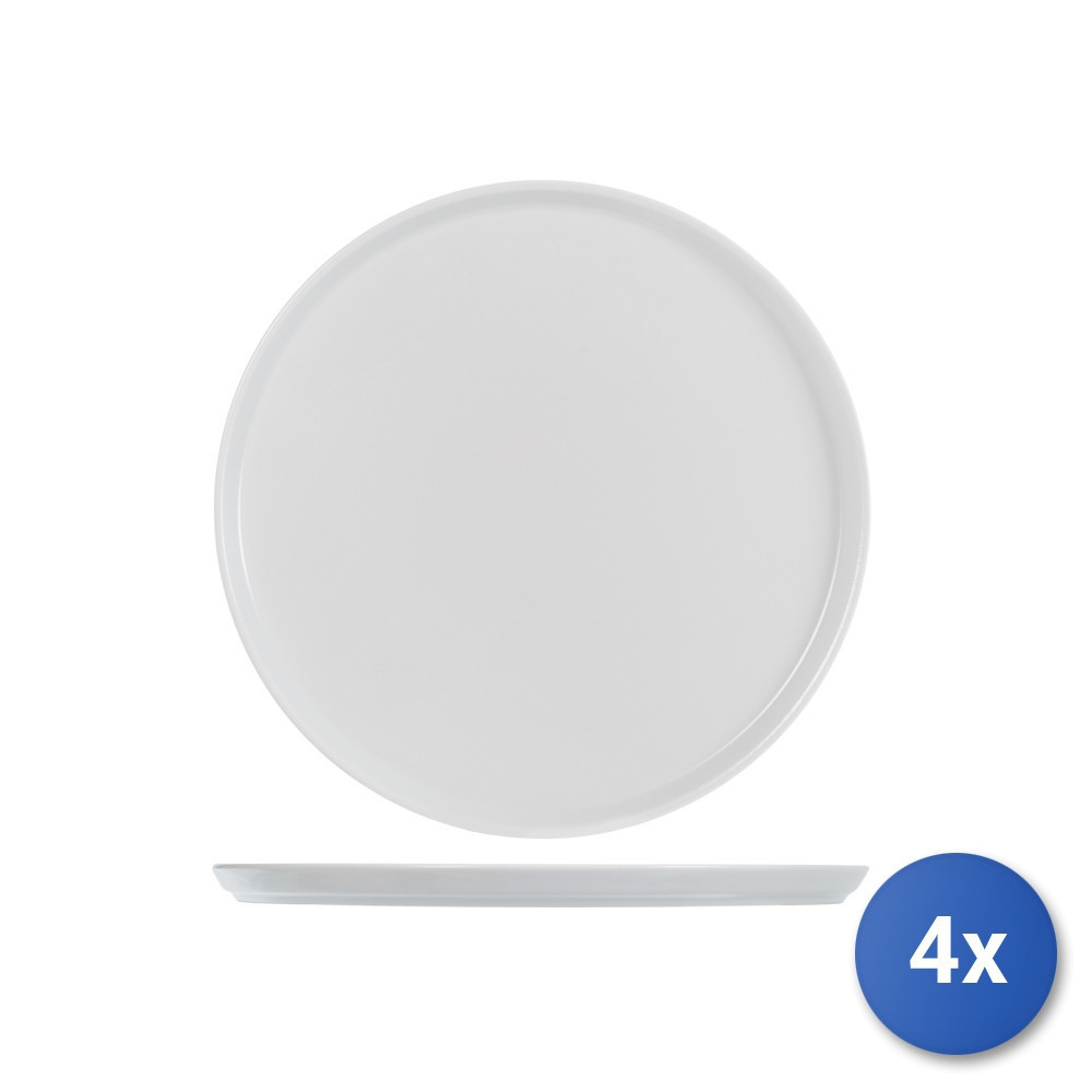 4x Plate H&H Denver 33cm White Pizza In Stoneware