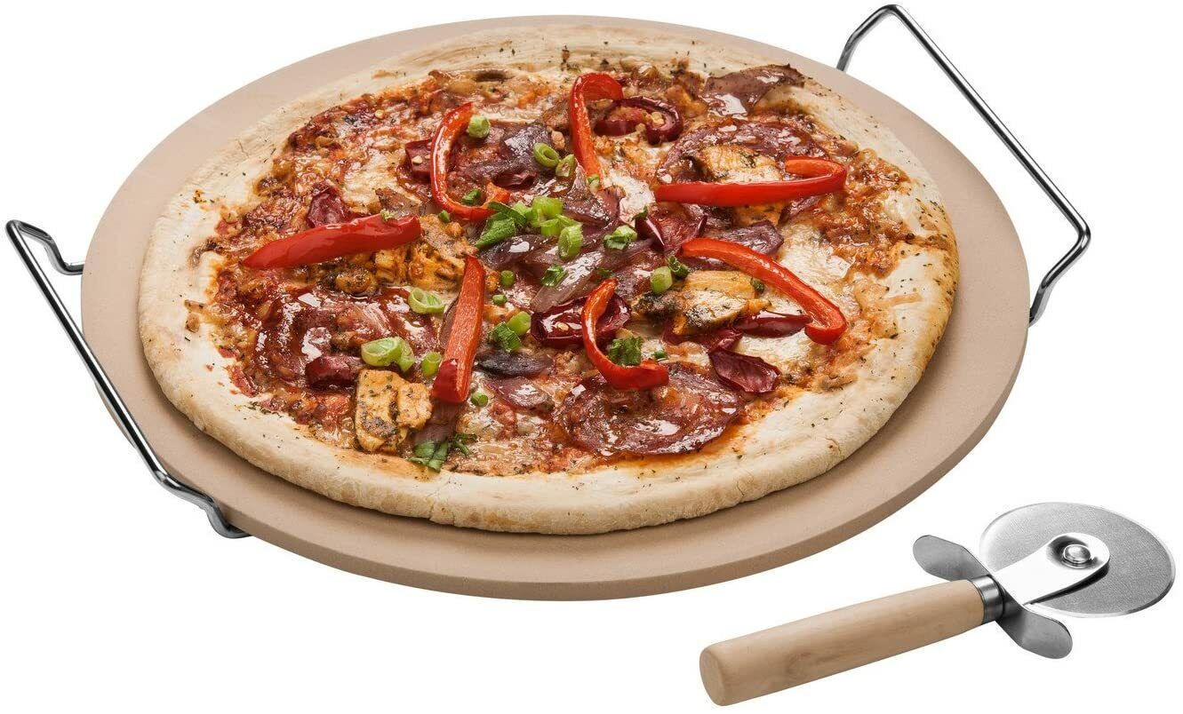 Pizza Stone & Cutter Set Baking set Stoneware Board Chrome Stand 33cm
