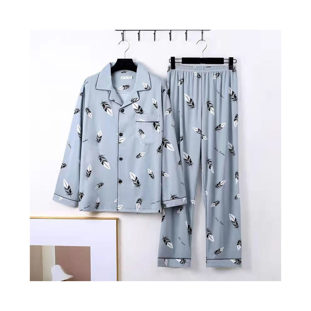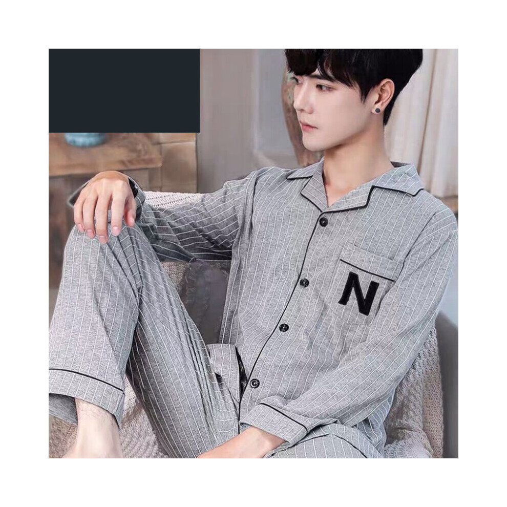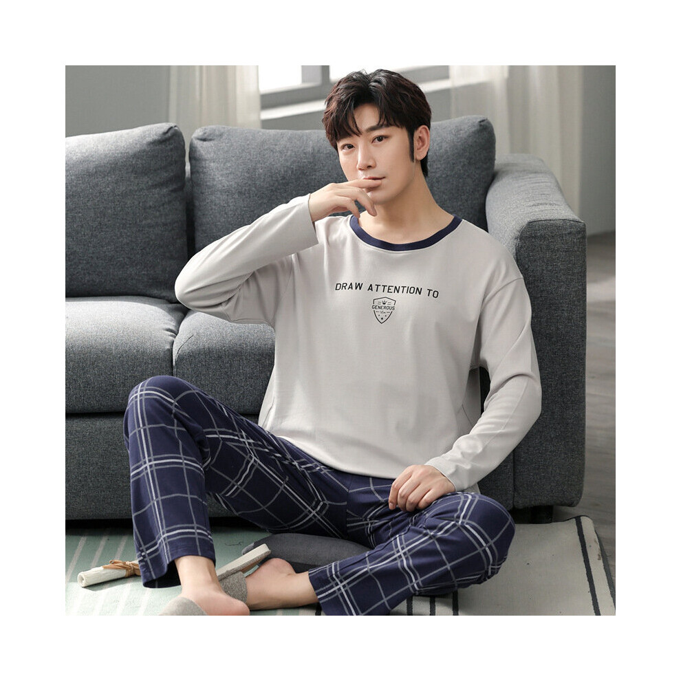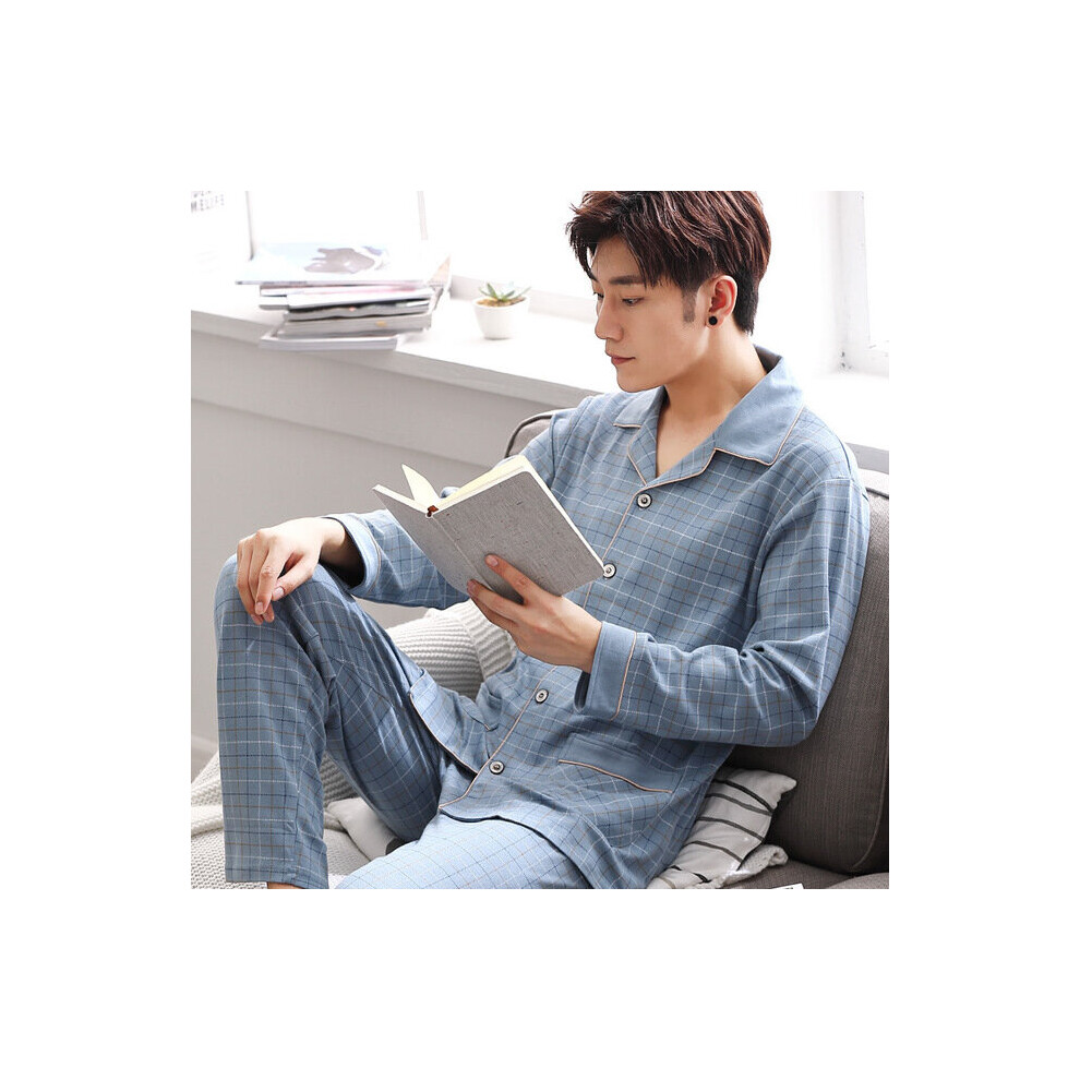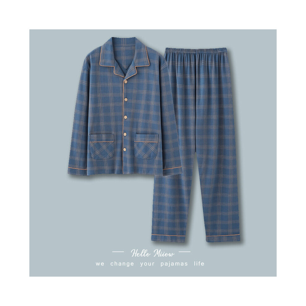 Spring Autumn Men Pajamas Set Cotton Print Sleepwear Night Suit Casual Long Sleeve Plaid Pants Pyjamas Plus Size Homewear