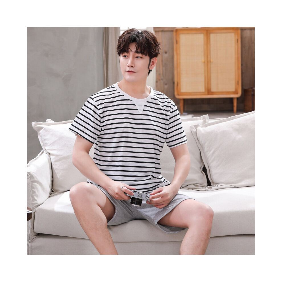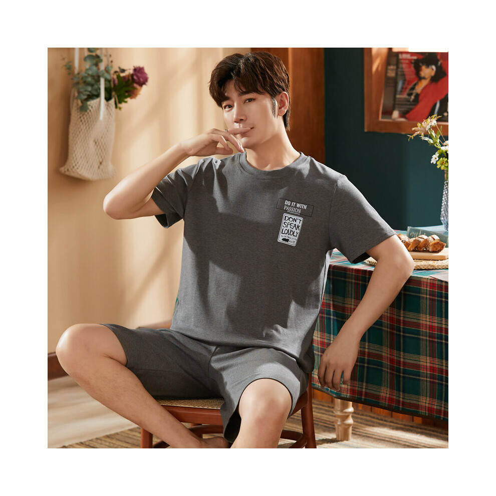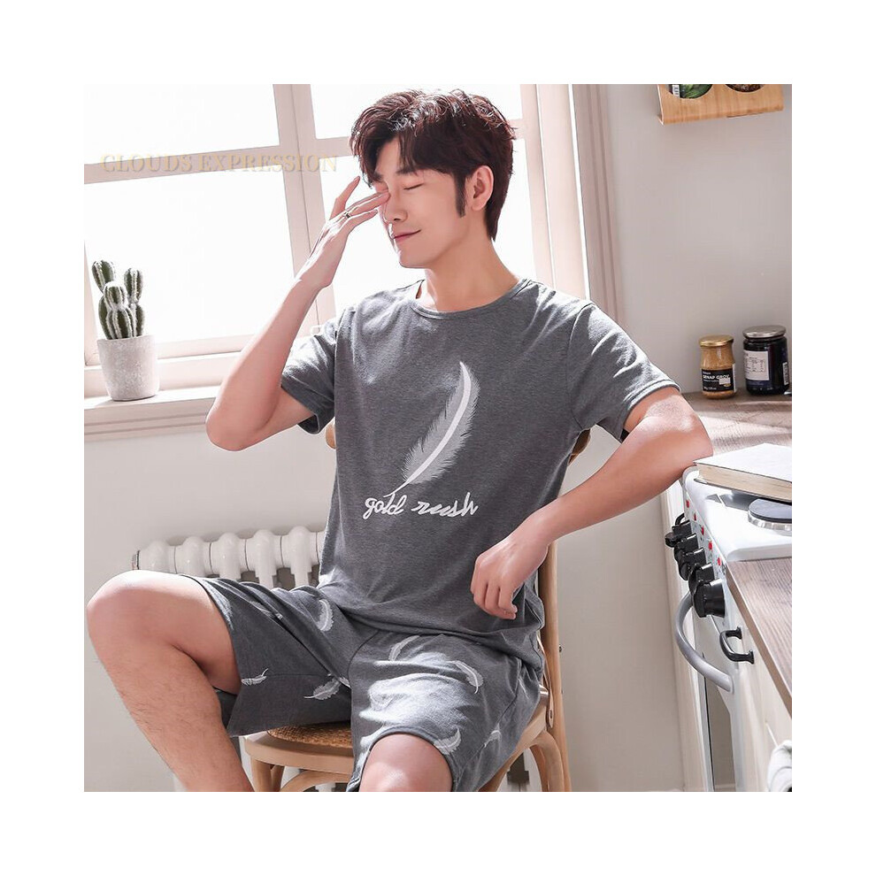 Cotton Nightwear For Men 2pcs/Set Sleepwear Summer Homewear Spring Male Pjs Short Sleeves Sleeping Tops Plaid Pant Pyjamas