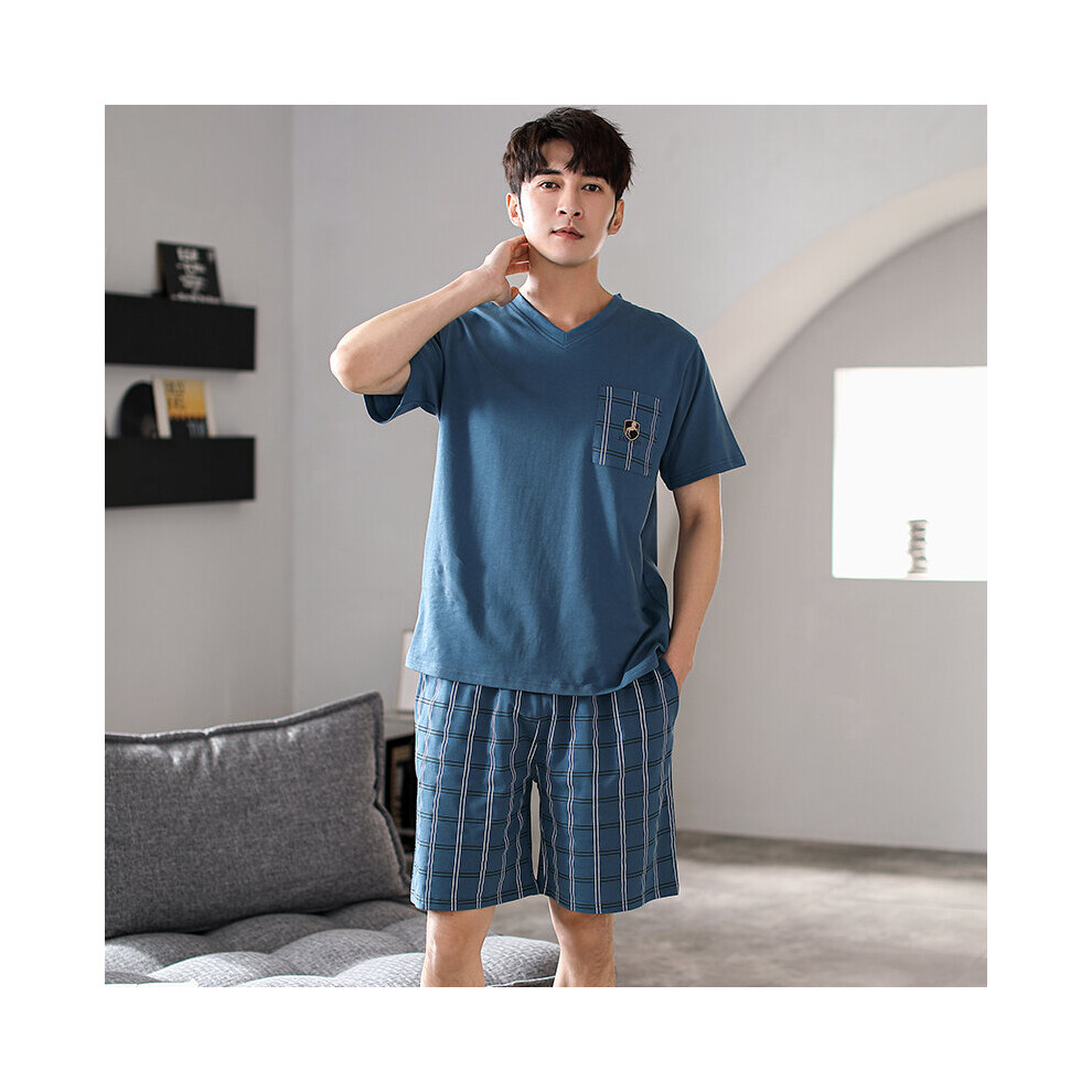 Summer Men's Pajama Sets Casual Short Tops +Short Pants Suit Pyjamas Plaid Men Sleepwear Pijamas Homewear