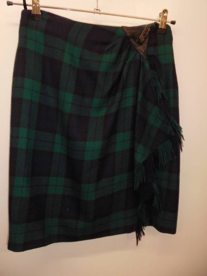 Synonyme Georges Rech Tartan/plaid Wool Mini Skirt Navy & Green Size: S