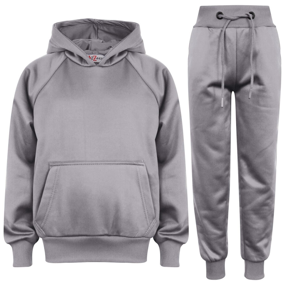 (11-12 Years, Steel Grey) Unisex Plain Stee Grey Sweat Hoodie Tracksuit