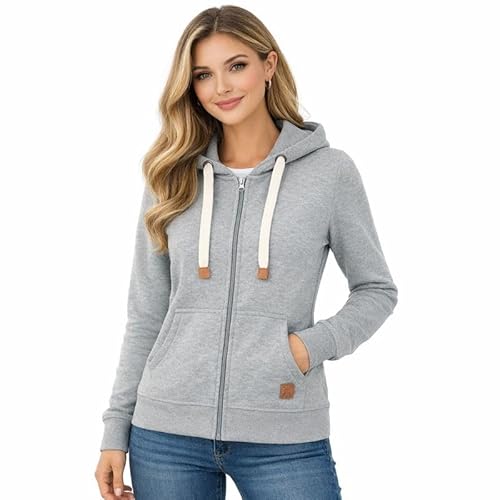 IWOLLENCE Womens Zip Up Grey Hoodie Fleece Oversized Y2K Full Zipper Plain Hooded Sweatshirt Grey L