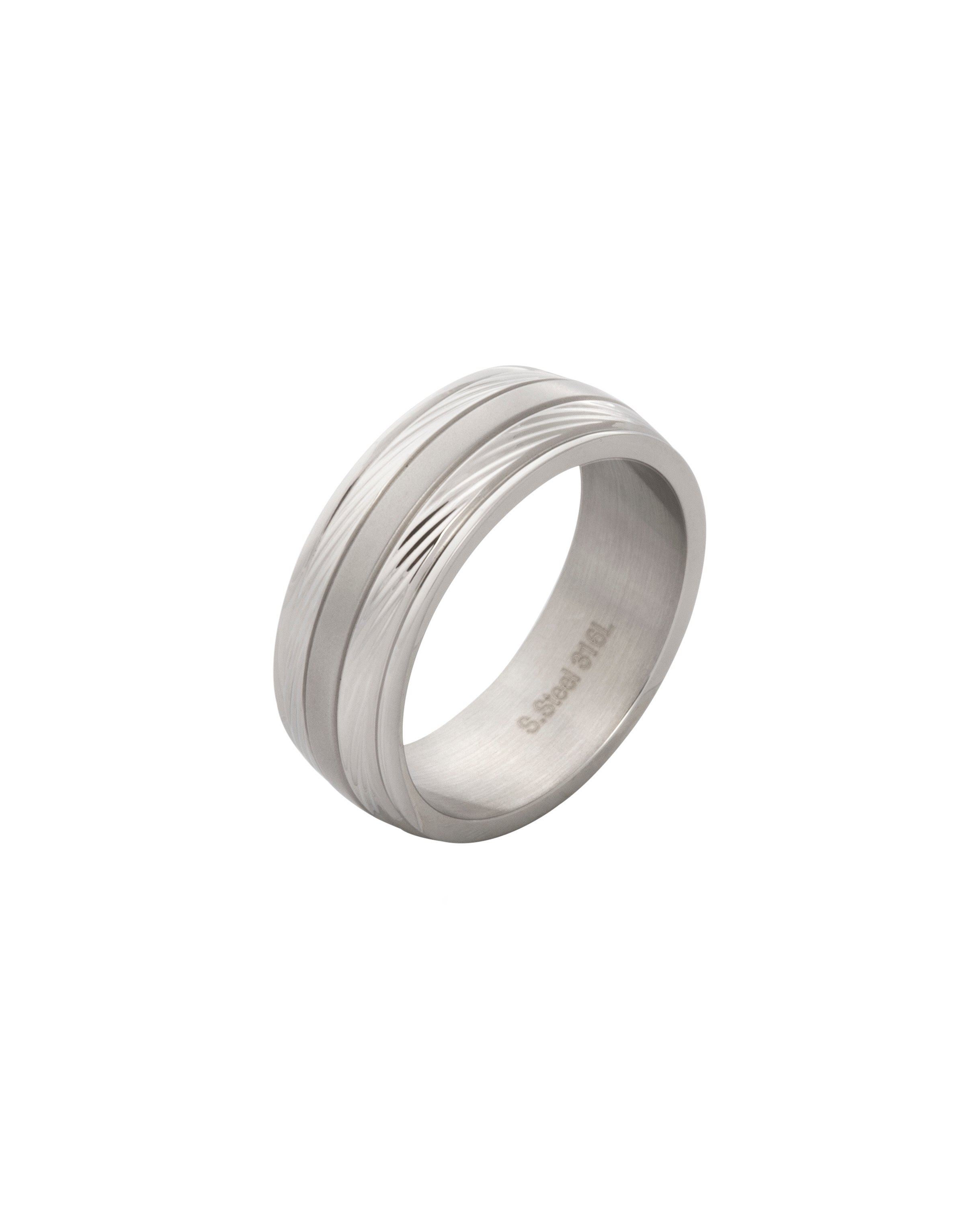 The Jewellery Stockroom Gent's Stainless Steel Silver Grooved Mens Plain Wedding Band Ring - Size R